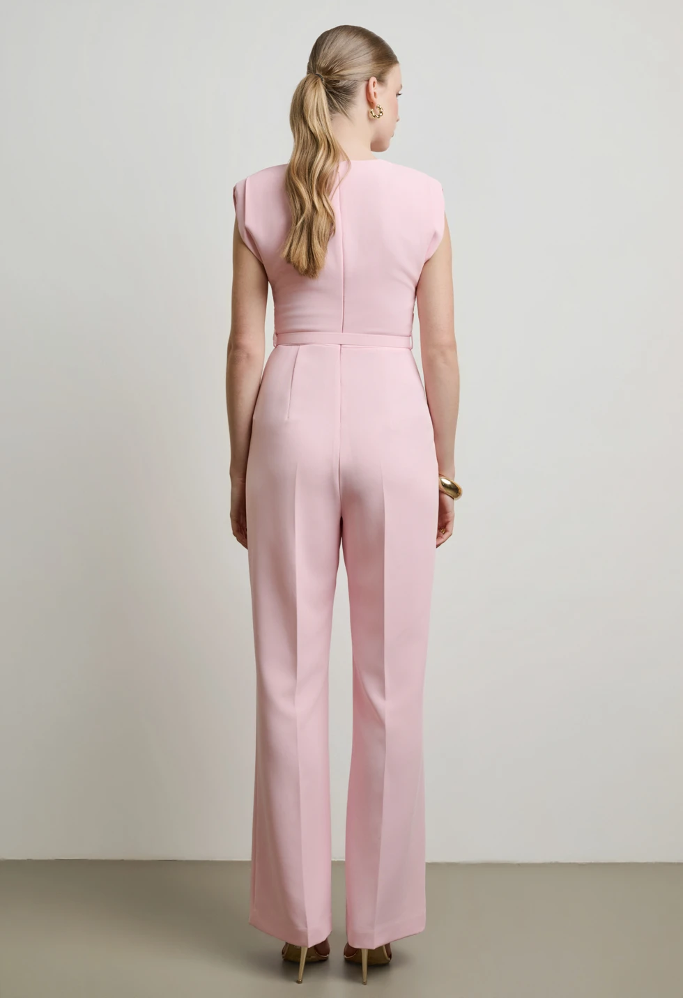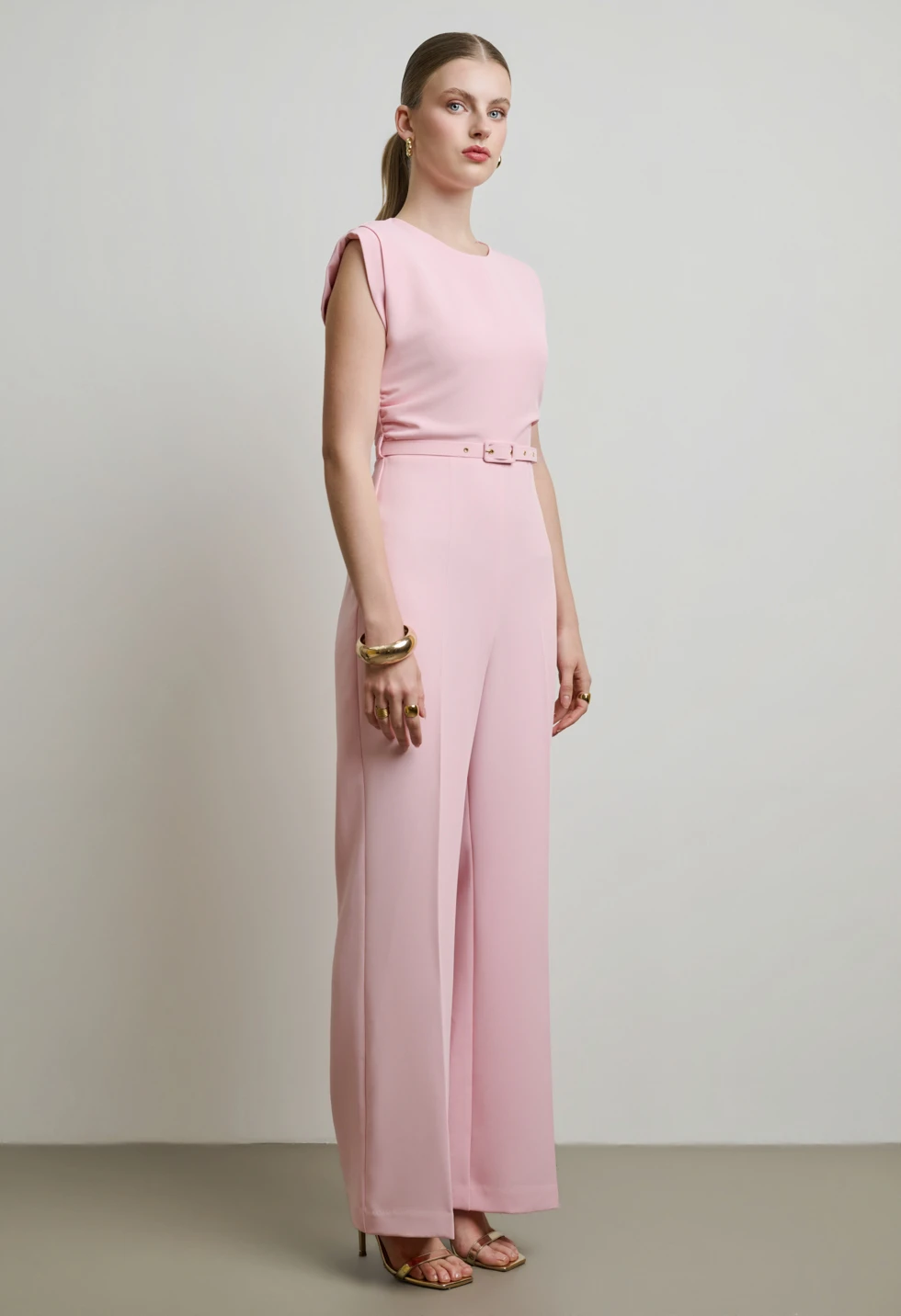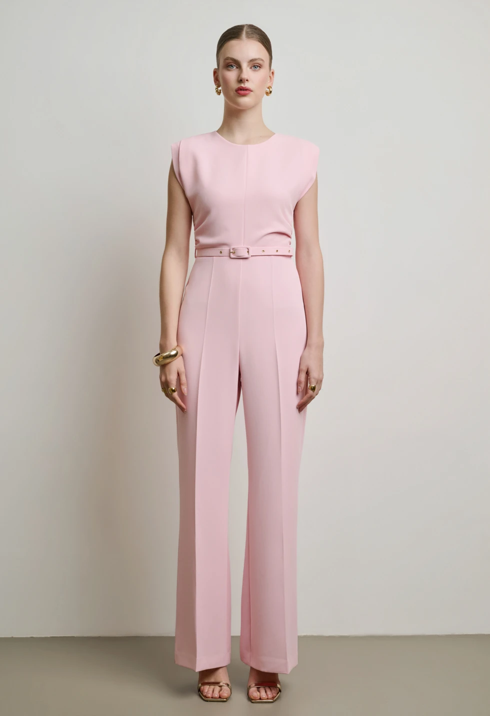 Ολόσωμη φόρμα με καθαρές γραμμές και minimal αισθητική, αποτελεί ιδανική επιλογή για chic εμφανίσεις από το πρωί έως το βράδυ.Το επάνω μέρος διαθέτει στρογγυλή λαιμόκοψη και διακριτικά καλυμμένους ώμους, ενώ η ενσωματωμένη λεπτή ζώνη τονίζει τη μέση και χαρίζει αρμονική σιλουέτα. Το παντελόνι σε ίσια, ελαφρώς φαρδιά γραμμή προσφέρει κομψή κίνηση και άνετη εφαρμογή. Διαθέτει κλείσιμο με κρυφό φερμουάρ στο πίσω μέρος. Συνδυάστε τη με ψηλοτάκουνα πέδιλα για επίσημες περιστάσεις ή με minimal.