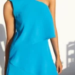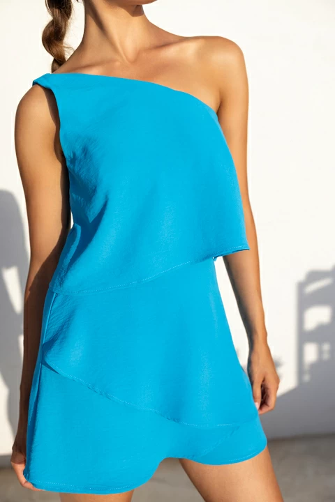 Ολόσωμη φόρμα με ασύμμετρη λαιμόκοψη, λεπτομέρειες με βολάν κάτω μέρος, κλείσιμο με φερμουάρ στο πλάι, κανονική εφαρμογή.