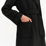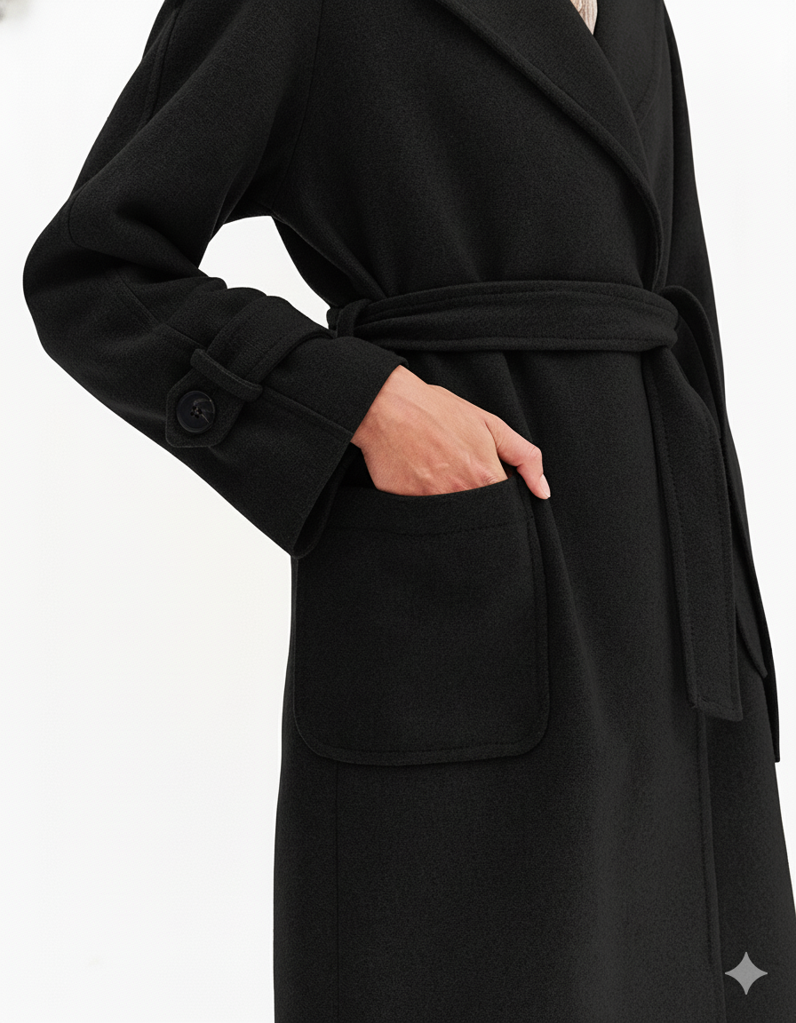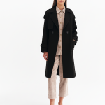 Κλασικό μαύρο παλτό trench με διπλό κούμπωμα