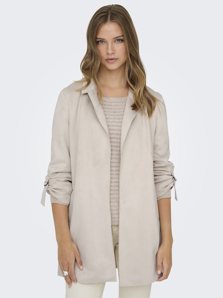 ONLY πανωφόρι μπεζ, την ιδανική επιλογή για τις ενδιάμεσες εποχές (άνοιξη και φθινόπωρο). Πρόκειται για ένα κομψό γυναικείο ημίπαλτο σε άνετη, ανοιχτή γραμμή (open front) χωρίς κουμπιά, που πέφτει χυτά στο σώμα προσδίδοντας στυλ και κίνηση.