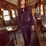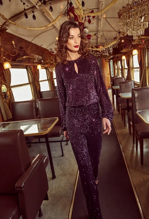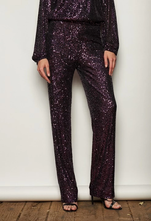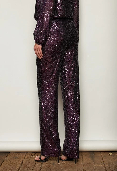 Παντελόνα από παγιέτες, ελαστική μέση, χαλαρή γραμμή.Το μοντέλο φοράει νούμερο S, Μέση: 70-74 Περιφέρεια: 96 Μάκρος 1,10m