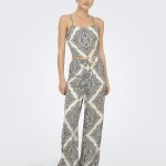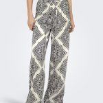 ONLY Παντελόνα εκρού, την απόλυτη επιλογή για άνετες και αέρινες εμφανίσεις. Πρόκειται για μια ψηλόμεση γυναικεία παντελόνα σε φαρδιά γραμμή, που ξεχωρίζει χάρη στο μαγνητικό μαύρο boho μοτίβο της. Διαθέτει πρακτική ελαστική μέση με ρυθμιζόμενο κορδόνι, εξασφαλίζοντας τέλεια εφαρμογή που κολακεύει κάθε σιλουέτα χωρίς να περιορίζει.
