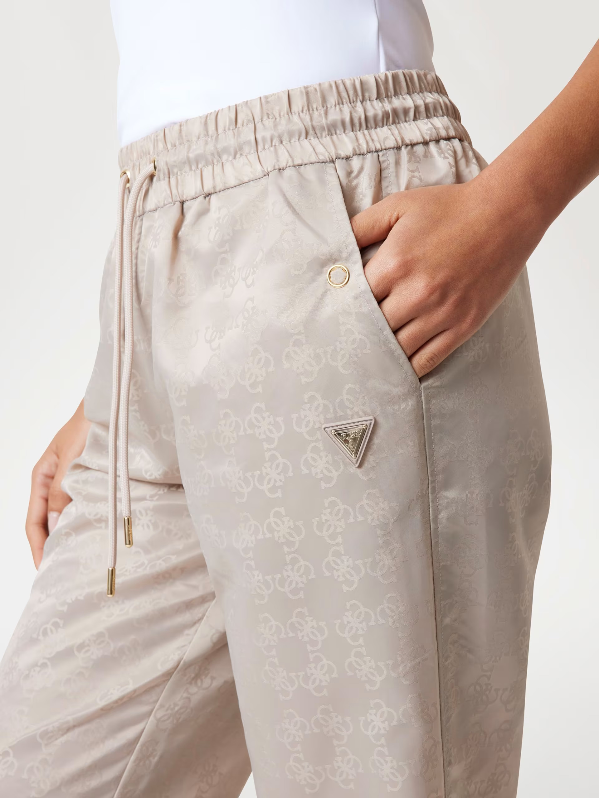 Παντελόνι jogger από συνθετικό ύφασμα.Ζακάρ σχέδιο με το λογότυπο 4G σε όλη την επιφάνεια.Λοξές τσέπες μπροστά με κουμπί.Άνετη, κανονική εφαρμογή.Κορδόνι στη μέση.