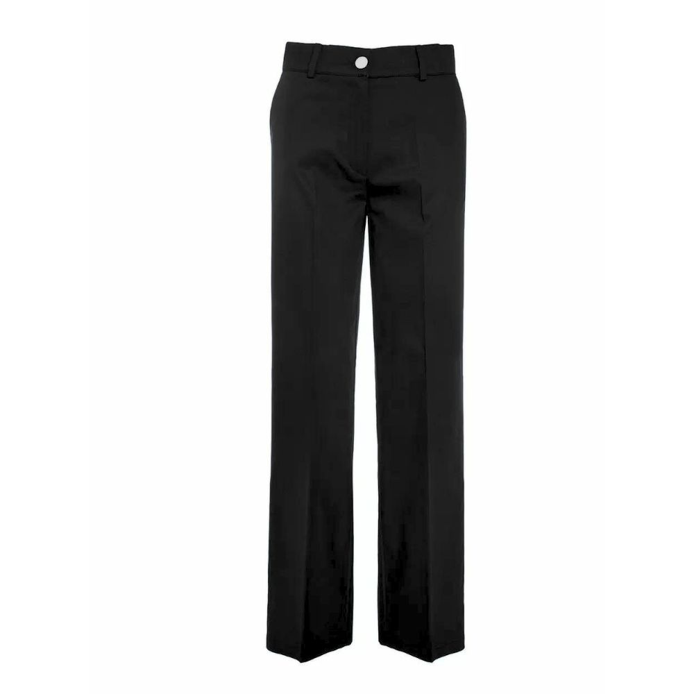Παντελόνι ισόφαρδο σε ελαστικό βαμβακερό ύφασμα. Κοφτή τσέπη μπροστά και μέση με θηλιές ζώνης. Κλείσιμο μπροστά με φερμουάρ και χρυσό κουμπί.