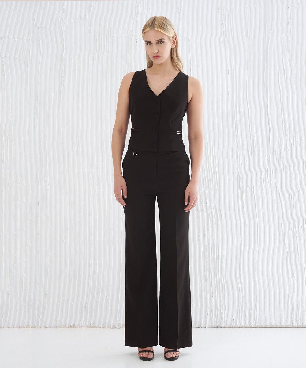 Παντελόνι σε ίσια γραμμή, κουμπώνει με φερμουάρ εμπρός και κουμπί,ψεύτικο φιλέτο τσέπης πίσω,διακοσμητική λεπτομέρεια εμπρός.
