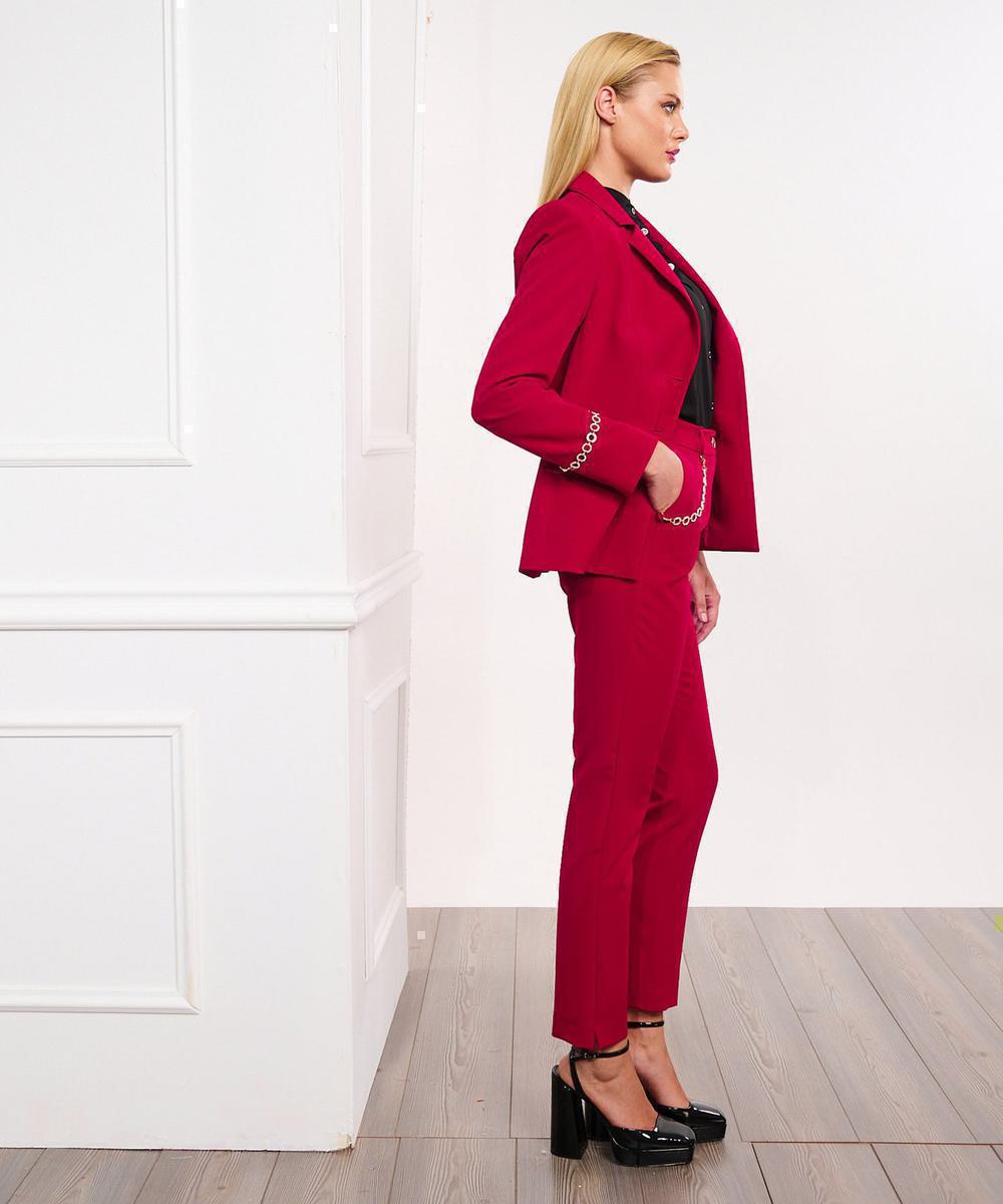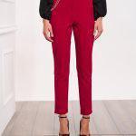 Παντελόνι σε στενή γραμμή , κουμπώνει με κουμπί και φερμουάρ εμπρός, πλαϊνές τσέπες,αποσπώμενη διακοσμητική αλυσίδα στην πλαϊνή, ψεύτικα φιλετάκια τσέπης πίσω.YΨΟΣ ΜΟΝΤΕΛΟΥ: 1.77cm.ΤΟ ΜΟΝΤΕΛΟ ΦΟΡΑΕΙ:XS