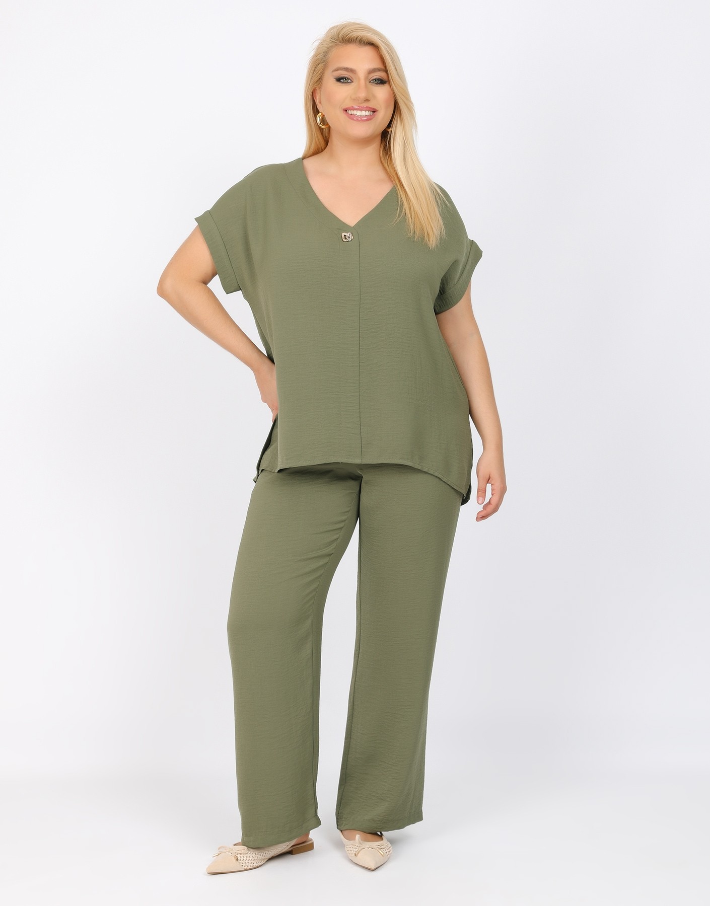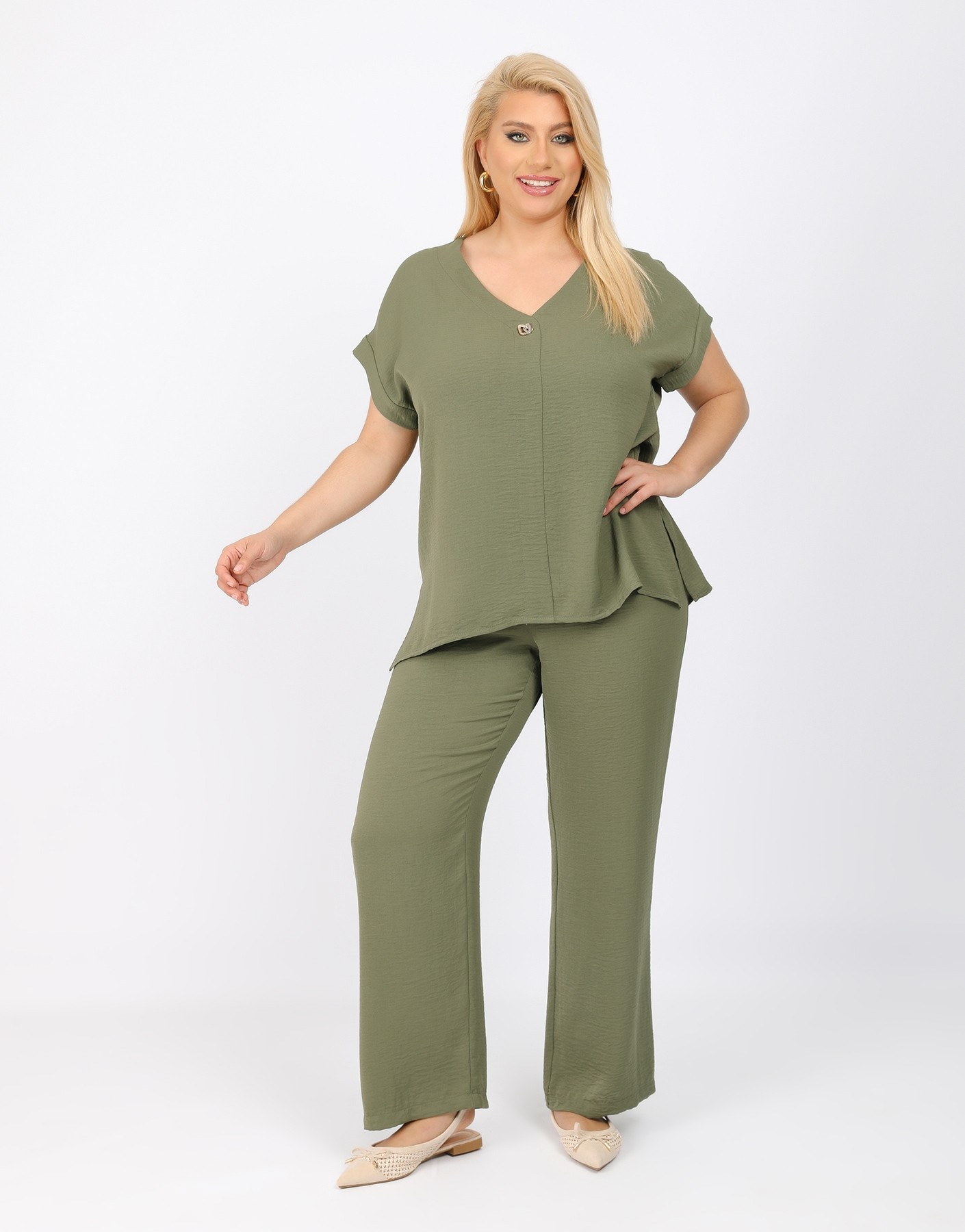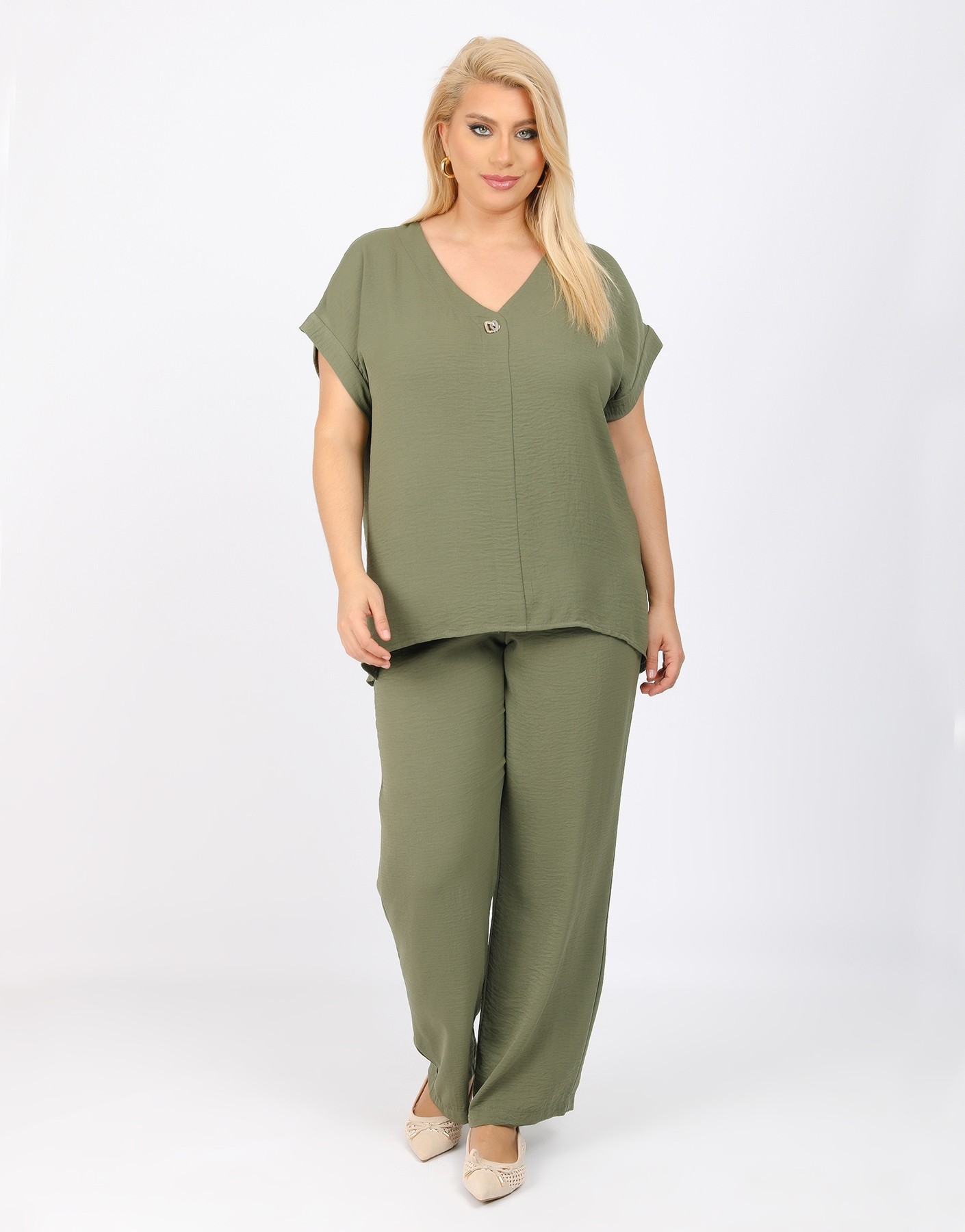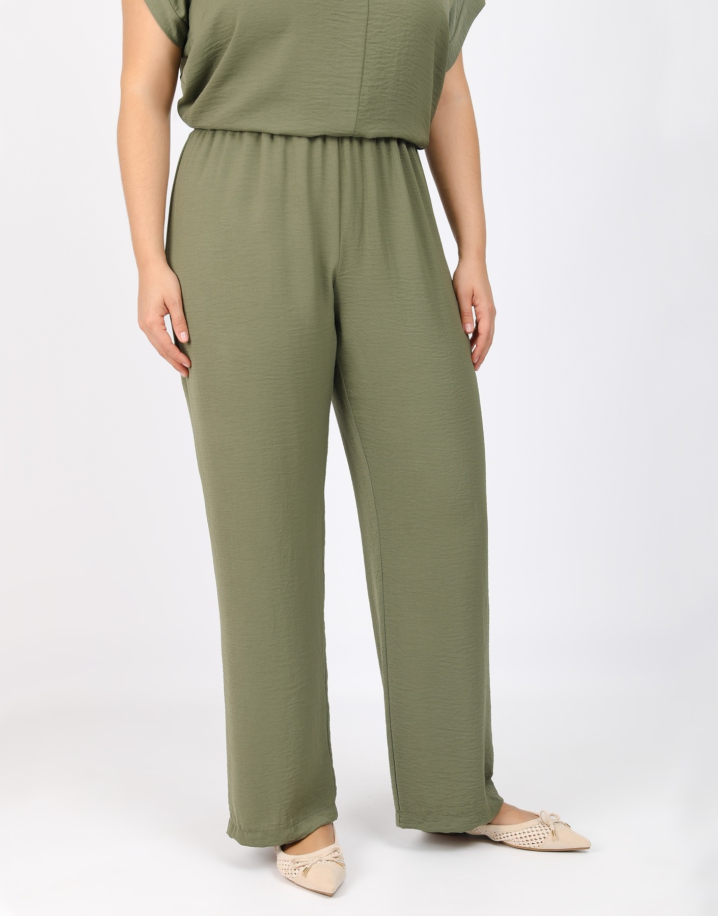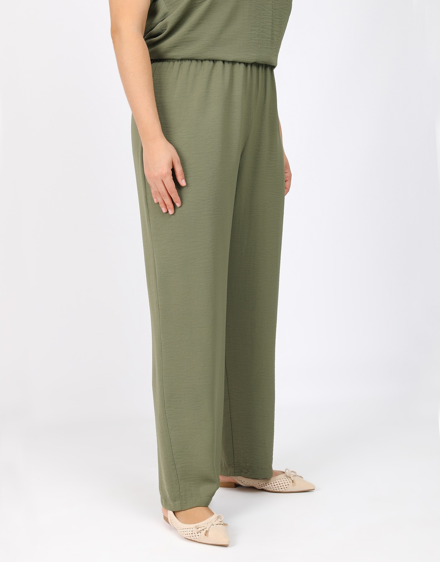 Παντελόνι τύπου λινό με λάστιχο στην μέση.
