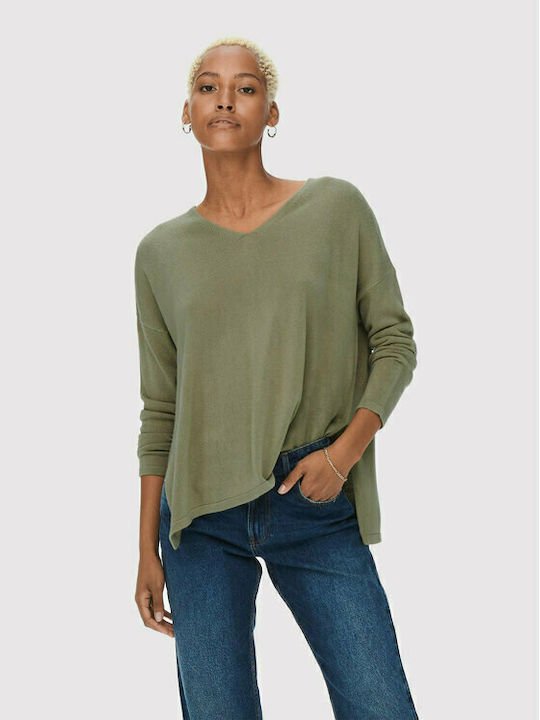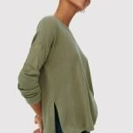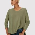 Πλεκτή μπλούζα μακρυμάνικη , Χαλαρή εφαρμογή, V άνοιγμα στο στήθος, Ανοίγματα στα πλαϊνά