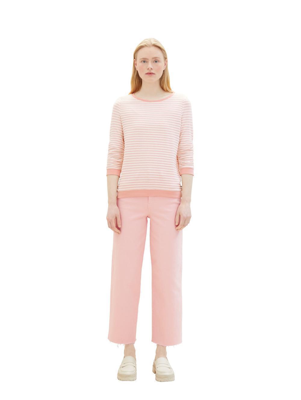 Πλεκτή μπλούζα με ρίγες, Μακρυμάνικη με στρογγυλή λαιμόκοψη * Κανονική εφαρμογή * Με αντίθεση ραβδώσεις τελειώματα στις άκρες στρίφωμα *βαμβάκι