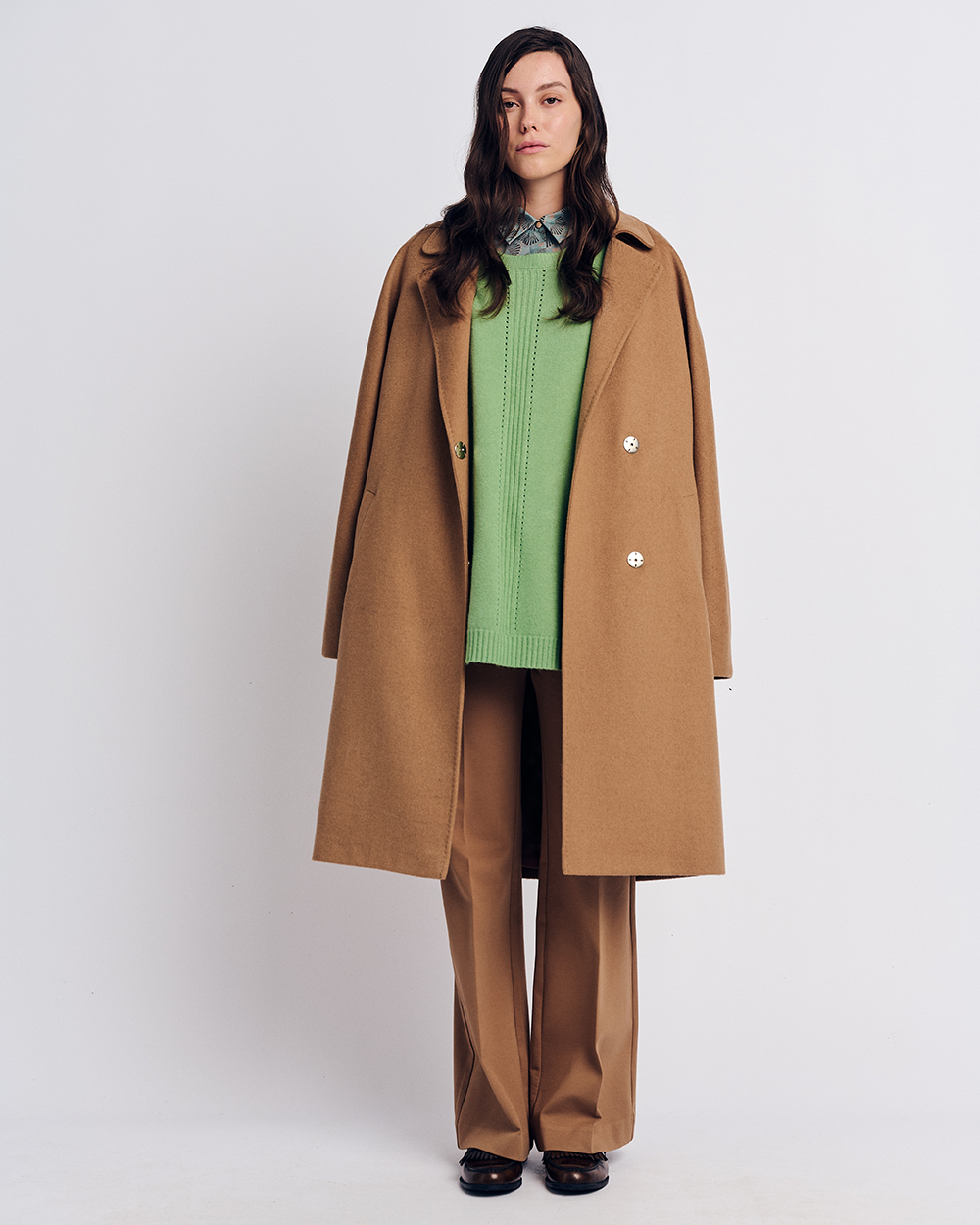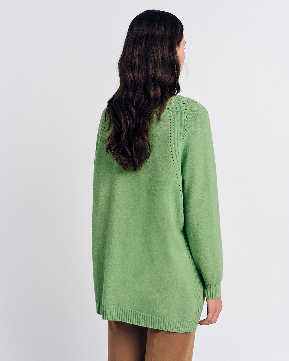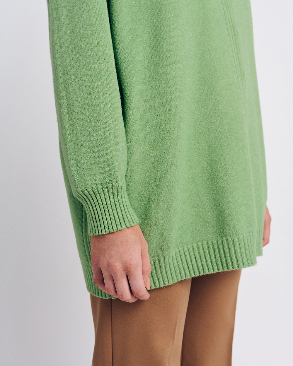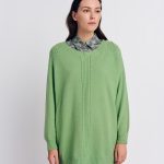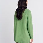Πλεκτή μπλούζα με στρογγυλή λαιμόκοψη. Άνετη γραμμή. Μακρύ μανίκι. Λεπτομέρεια, ριπ τελειώματα.