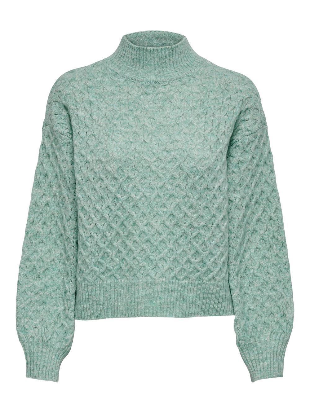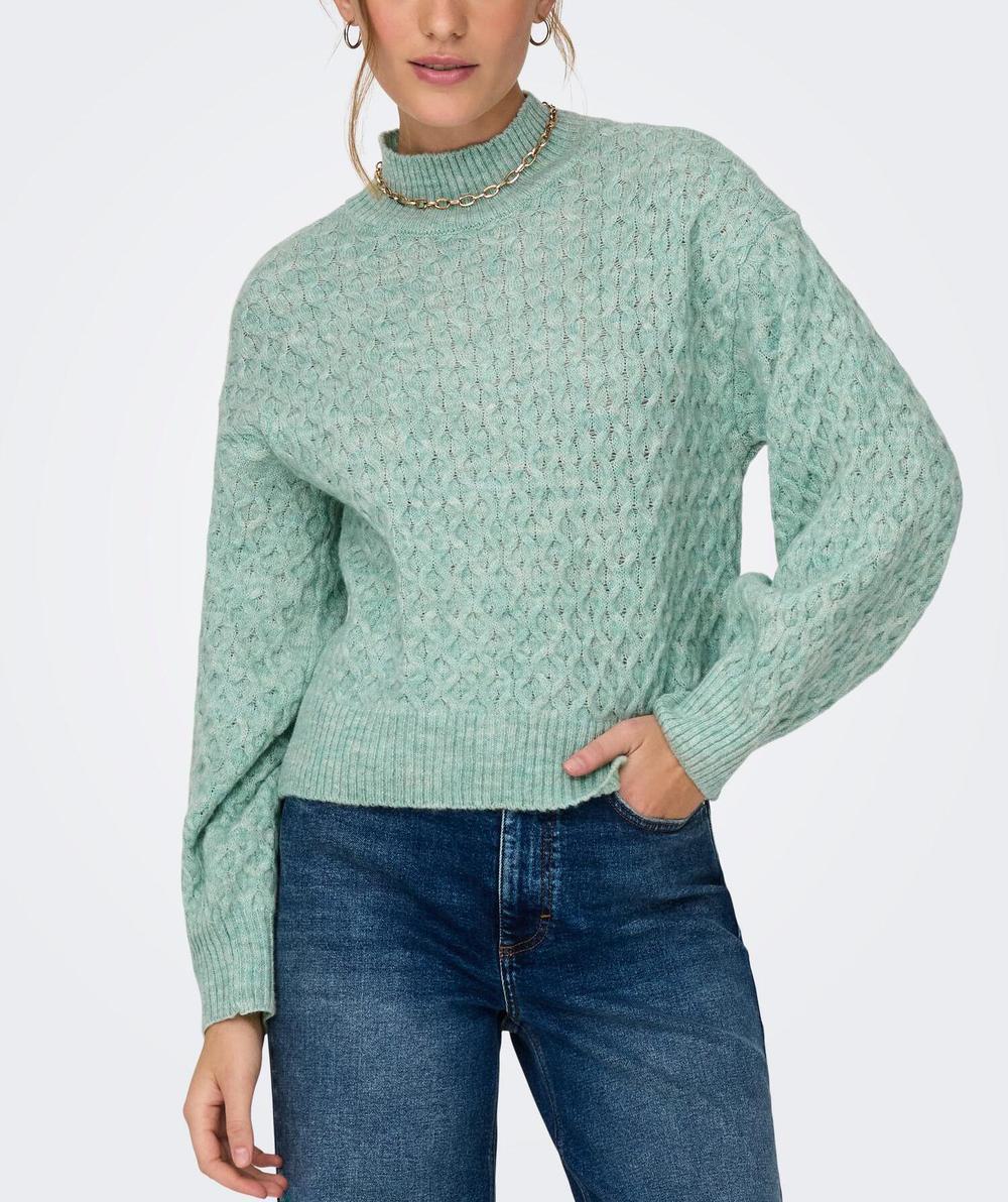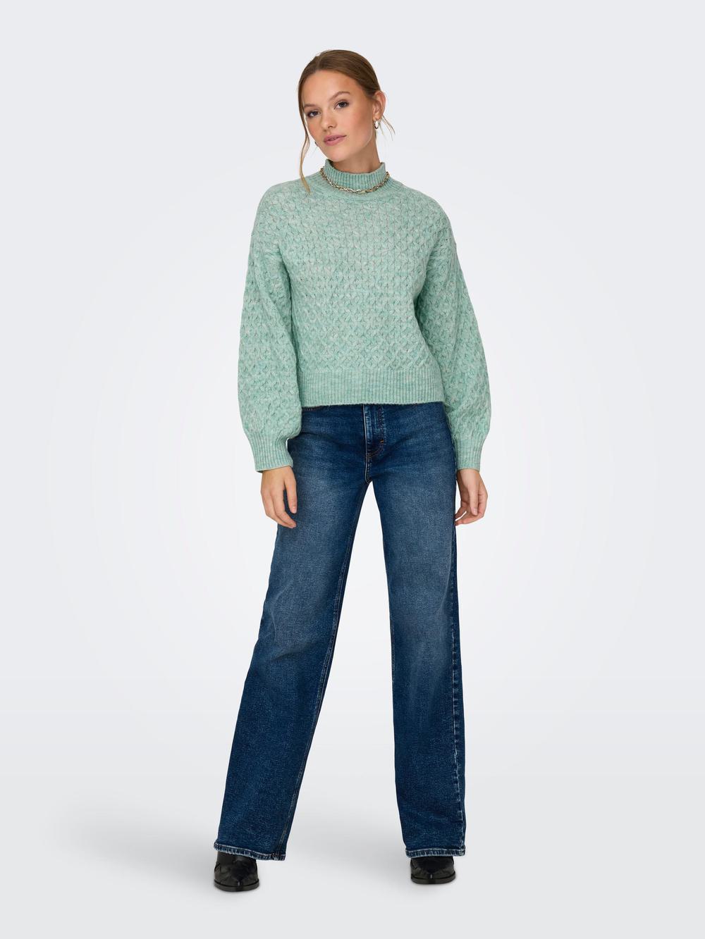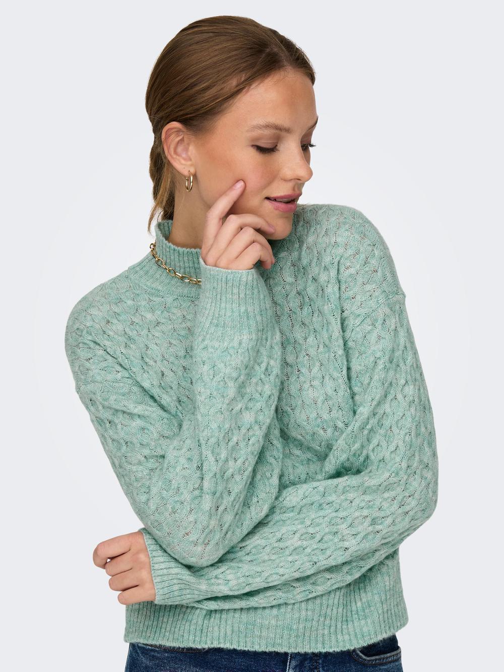 Πλεκτό πουλόβερ , Ψηλός λαιμός, Μακριά μανίκια, Πεσμένοι ώμοι, Μήκος/μέγεθος : Κοντό