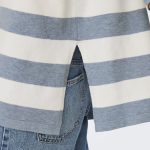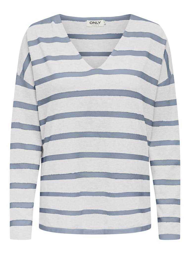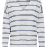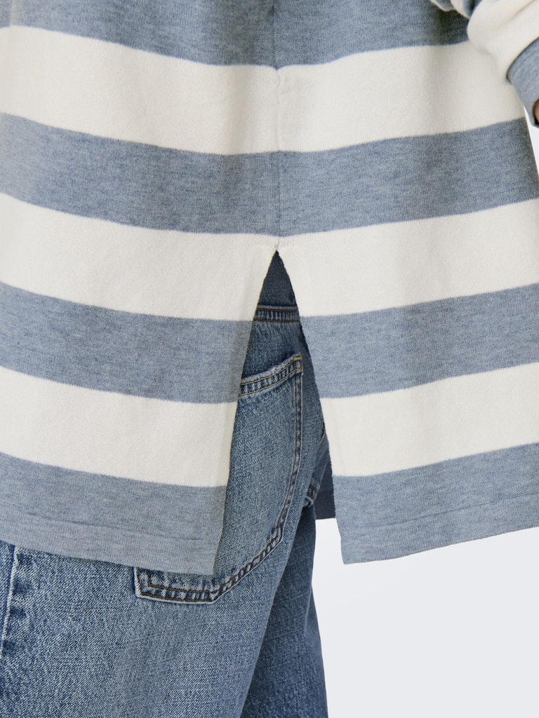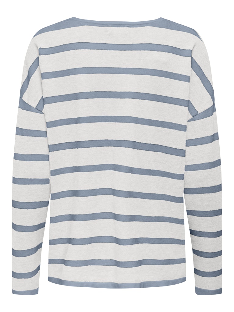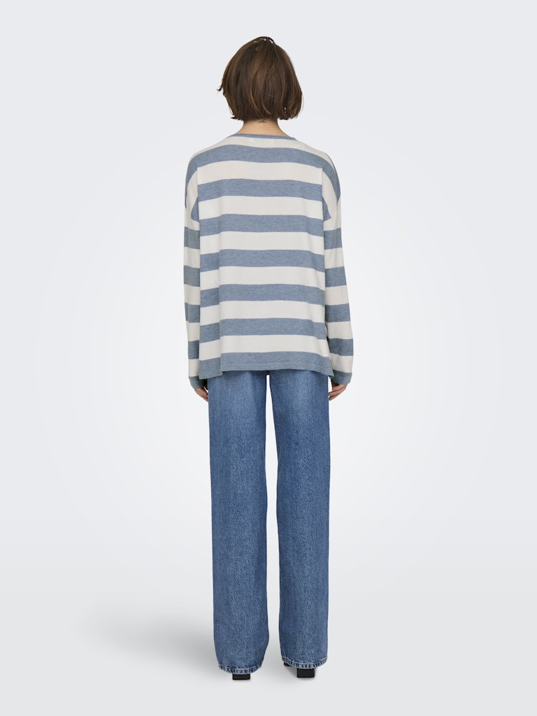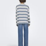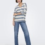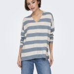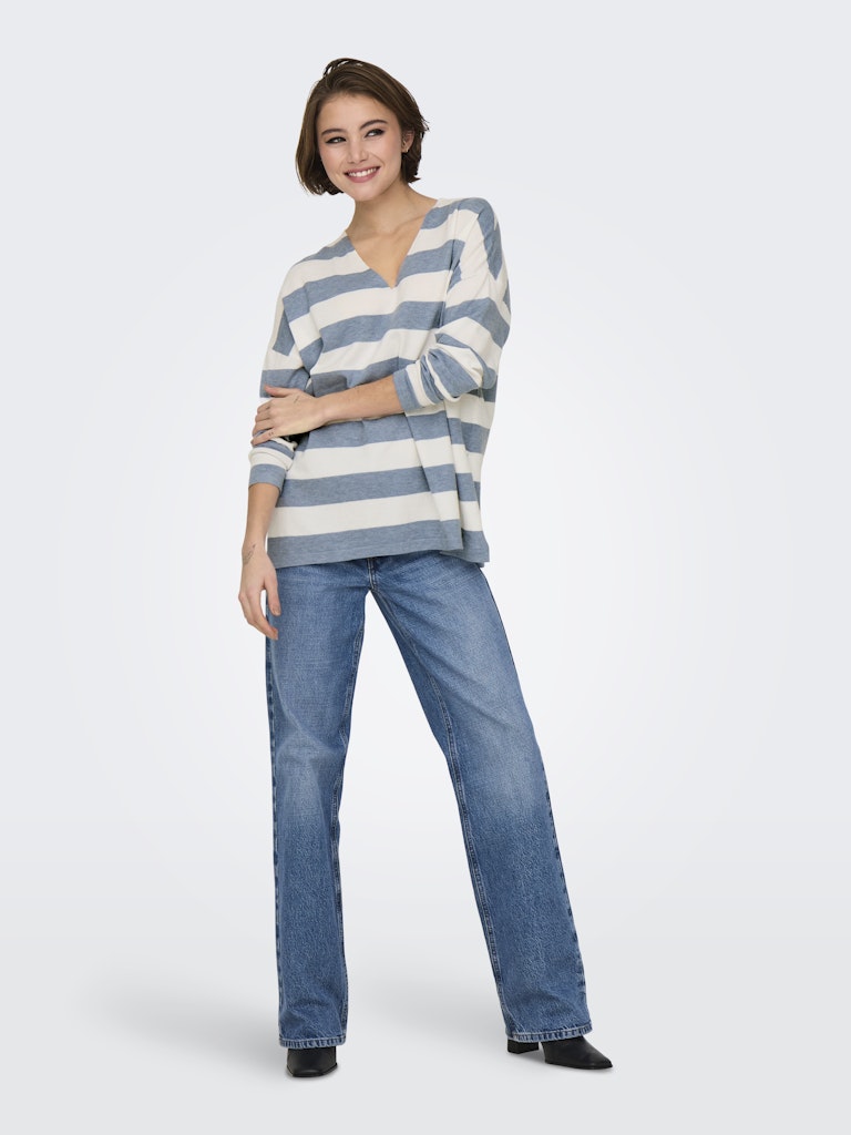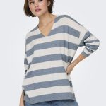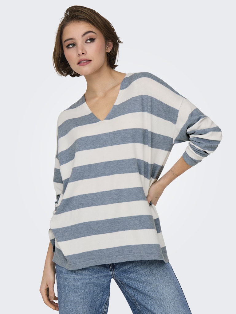 Πλεκτό πουλόβερ ριγέ λεπτό, Λαιμός: V-Neck, Μανίκια: Πεσμένοι ώμοι, Μανσέτες : Μανσέτες με ραβδώσεις – Fit : Oversize Fit