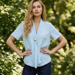 Πουκάμισο κοντομάνικο με γιακά φουλάρι και αγκράφα