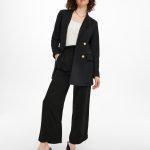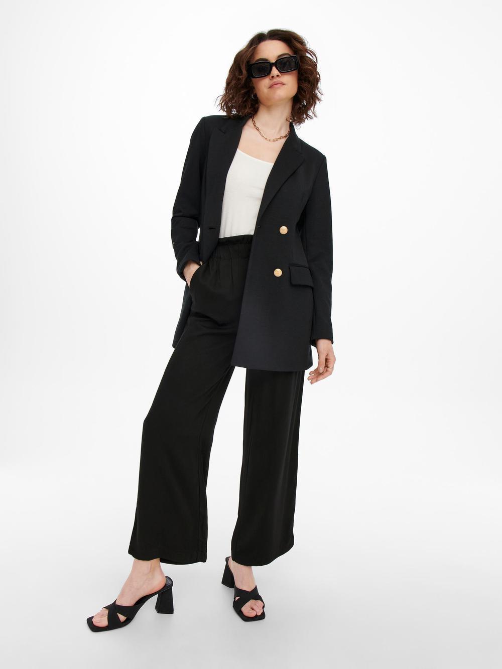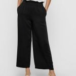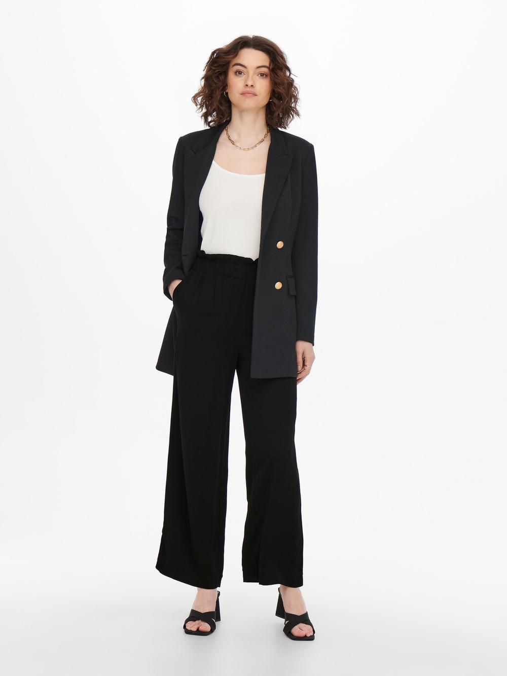 ONLY Ψηλόμεση υφασμάτινη παντελόνα με λάστιχο.Άνετη γραμμή.Ελαστική μέση.Πλαϊνές τσέπες.Φαρδιά πόδια