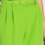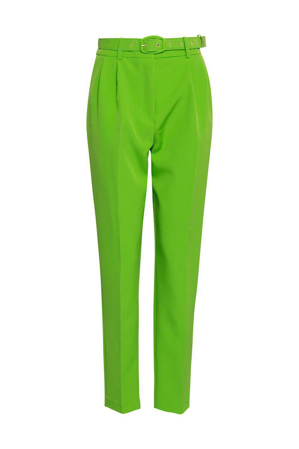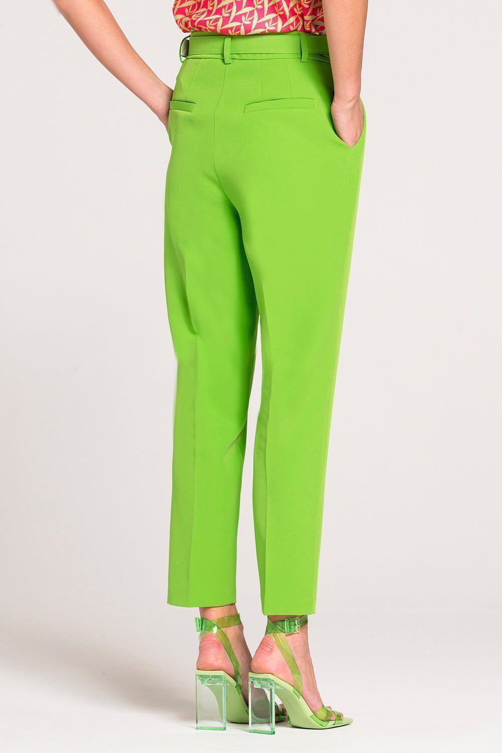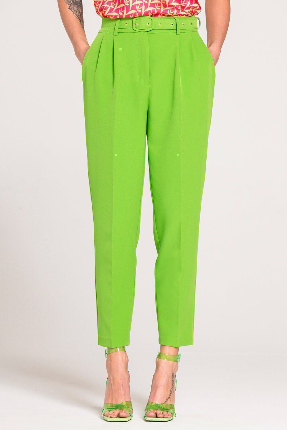 Ψηλόμεσο παντελόνι μονόχρωμο με πιέτες, τσέπες στα πλαινα μπροστά, τσέπες πίσω , κλείσιμο με φερμουάρ., ζώνη από το ιδιο ύφασμα.