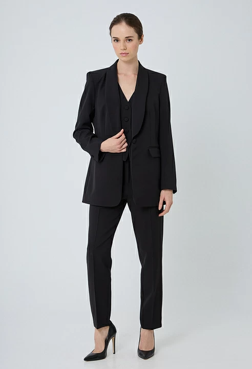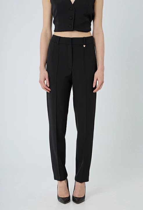 Ψηλόμεσο παντελόνι με τονισμένη ραφή μπροστά, πλαινές τσέπες, τσέπες στο πίσω μέρος με ρέλι, κλείσιμο μπροστά με φερμουάρ και κουμπί, κανονική εφαρμογή.