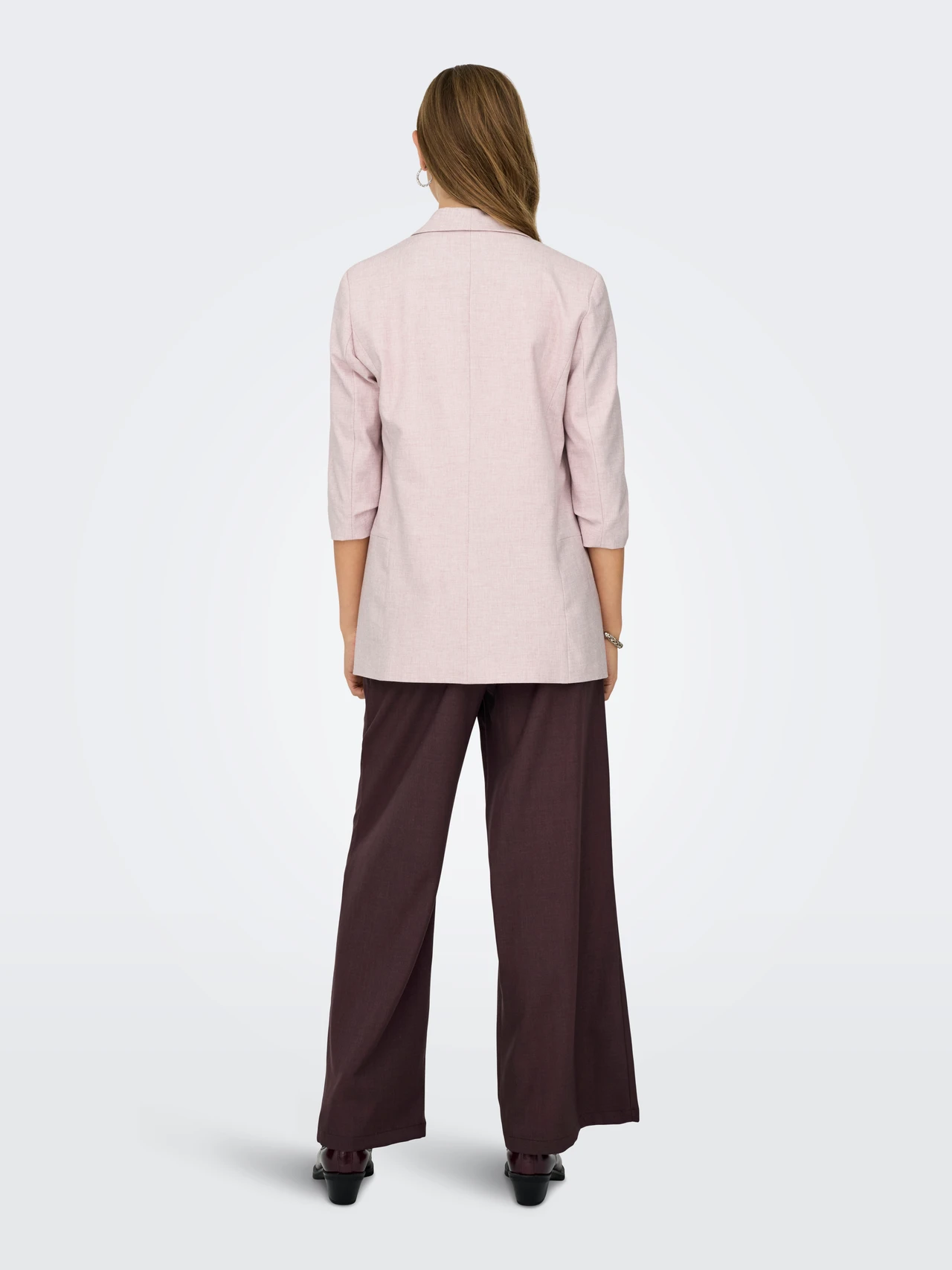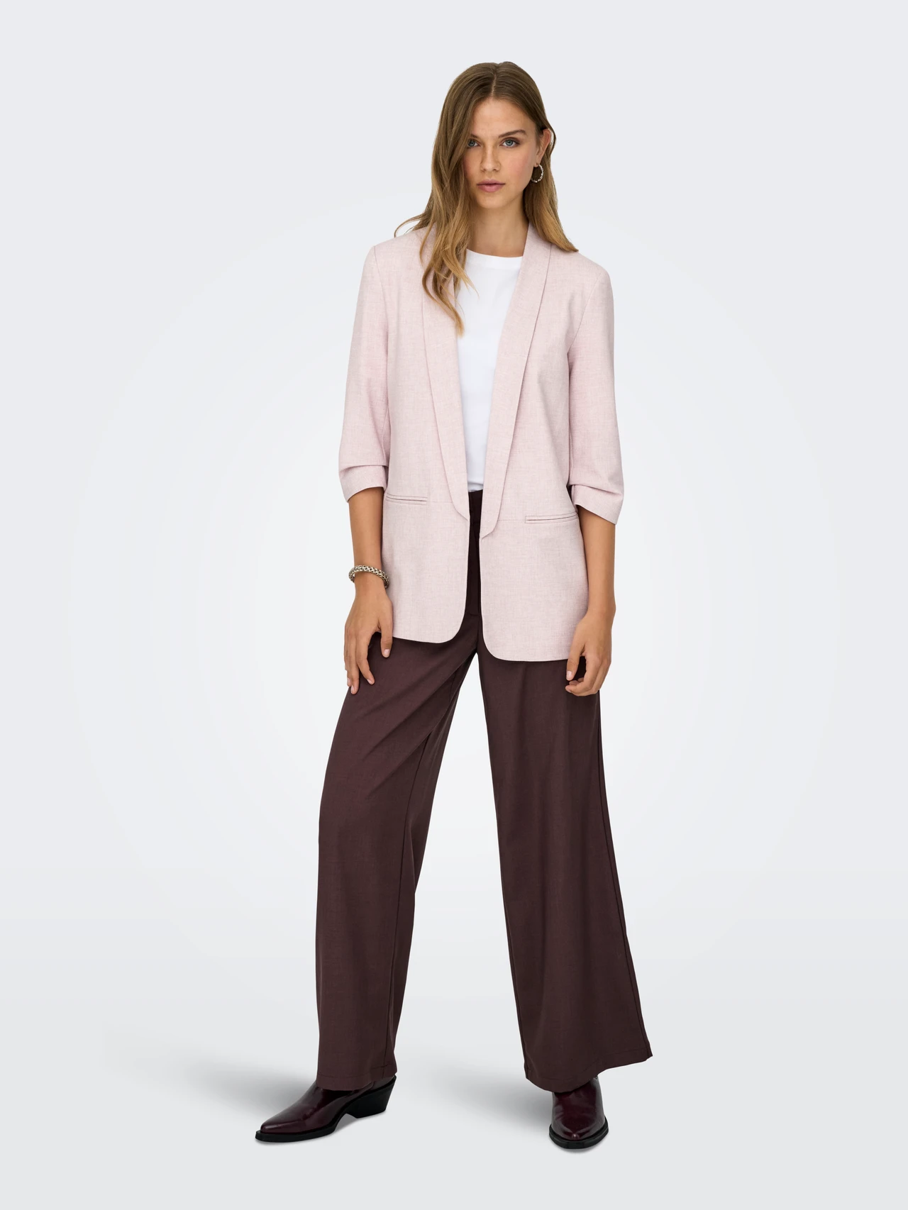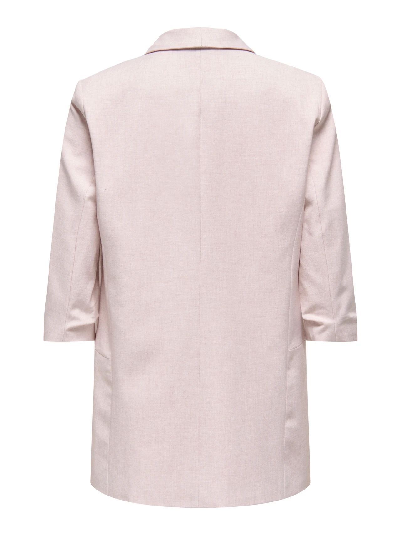 ONLY γυναικείο σακάκι , ιδανικό για να ολοκληρώσει τις πιο κομψές και επαγγελματικές σας εμφανίσεις. Το κομψό σχέδιο με τα 3/4 μανίκια προσδίδει μια σύγχρονη αισθητική, ενώ η απαλή παλ ροζ απόχρωση χαρίζει φωτεινότητα και θηλυκότητα σε κάθε σύνολο. Κατασκευασμένο από άνετο πλεκτό ύφασμα, προσφέρει εξαιρετική εφαρμογή και ελευθερία κινήσεων, κάνοντάς το την τέλεια επιλογή για το γραφείο ή τις κοινωνικές σας εκδηλώσεις. Συνδυάστε το με υφασμάτινο παντελόνι ή φούστα για ένα ολοκληρωμένο και προσεγμένο look με την υπογραφή της ONLY.