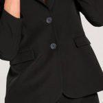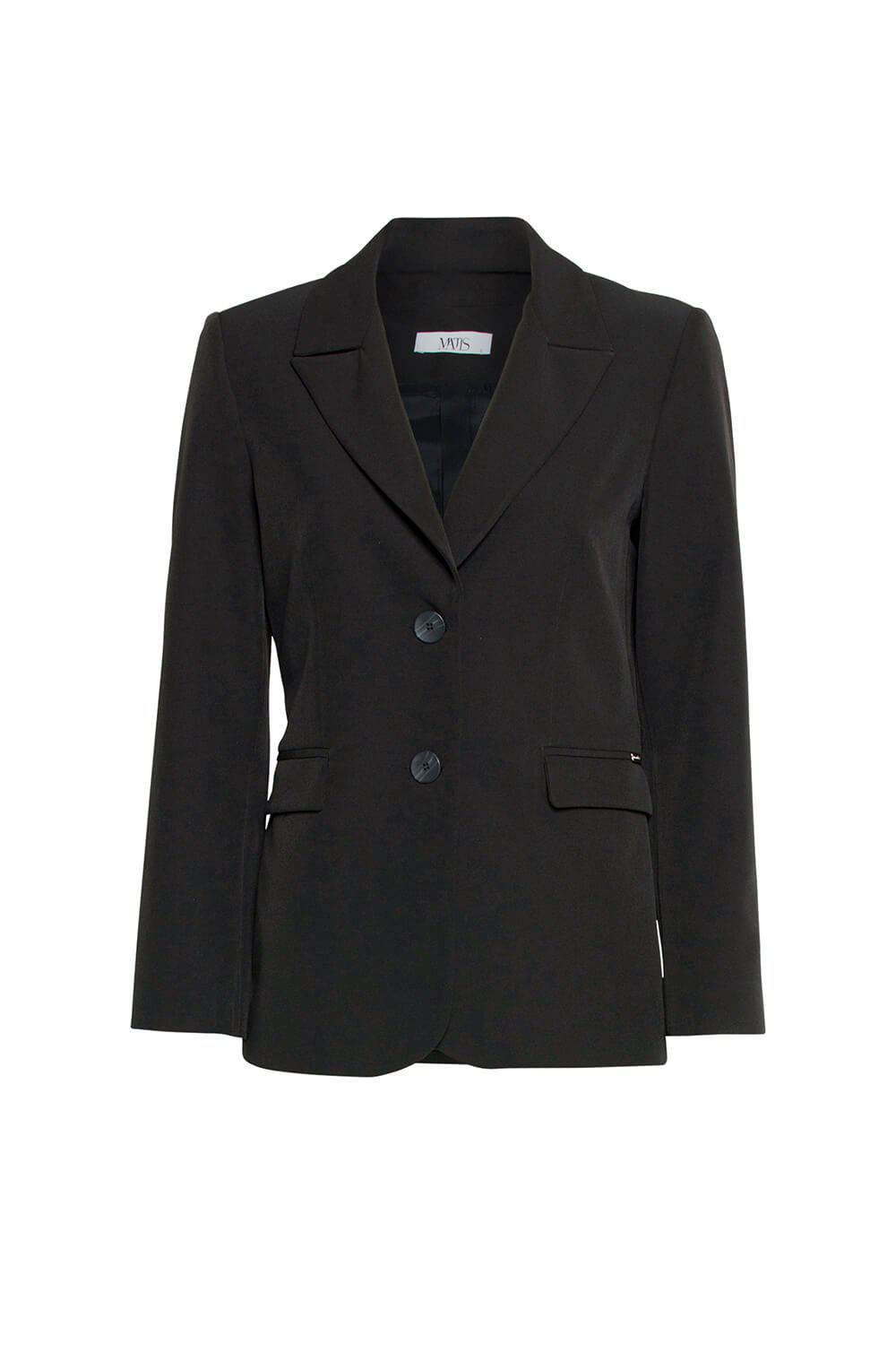 Σακάκι μονόχρωμο με γιακά, μακρια μανίκια, τσέπες στα πλαινα μπροστά. Κλείσιμο με κουμπιά μπροστά, εσωτερικά φοδραρισμένο.