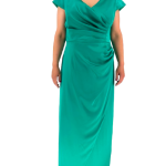 Εντυπωσιακό μάξι φόρεμα με σατέν υφή, ντραπέ σχέδιο στο μπούστο και φάσα που τονίζει τη μέση. Ιδανικό για βραδινές εμφανίσεις.