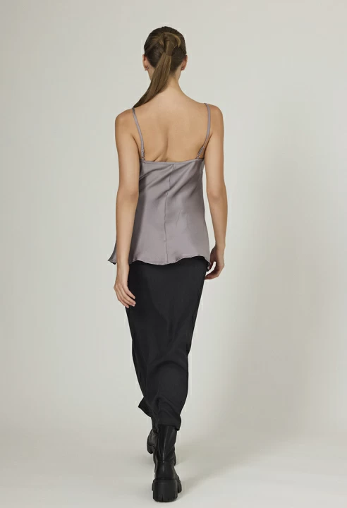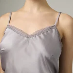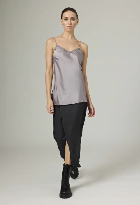 Τοπ με V ντεκολτέ και ασορτί δαντέλα σε συνδυασμό, λεπτές ρυθμιζόμενες τιράντες, κανονική εφαρμογή.