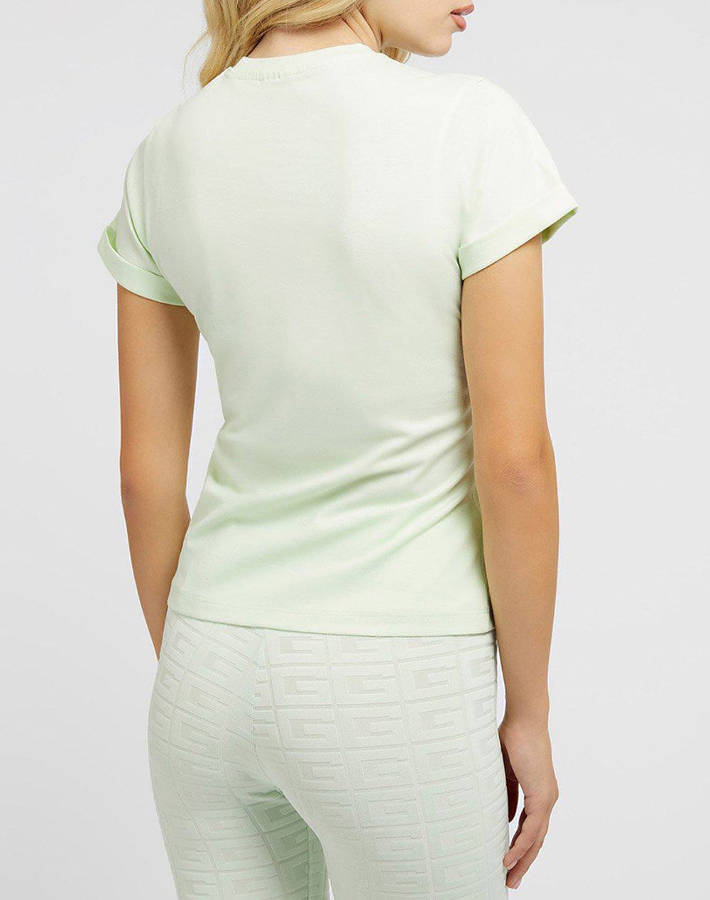 T-shirt σε κανονική γραμμή, μονόχρωμο, κοντομάνικο, με γυριστό μανίκι, στρογγυλή λαιμόκοψη και τύπωμα το λογότυπο της εταιρείας μπροστά.