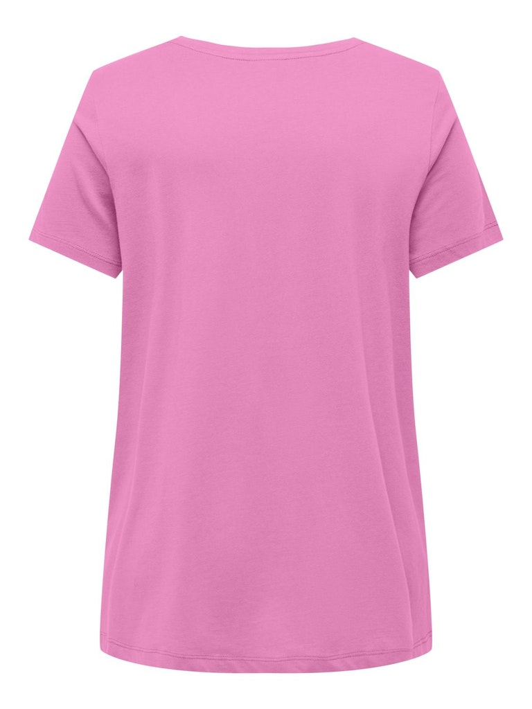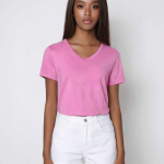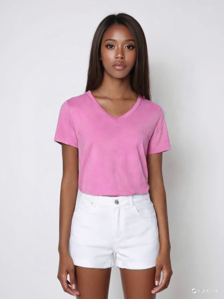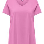 T-shirt μονόχρωμο με V, Μανίκι : Κοντό μανίκι, Fit : Κανονική εφαρμογή
