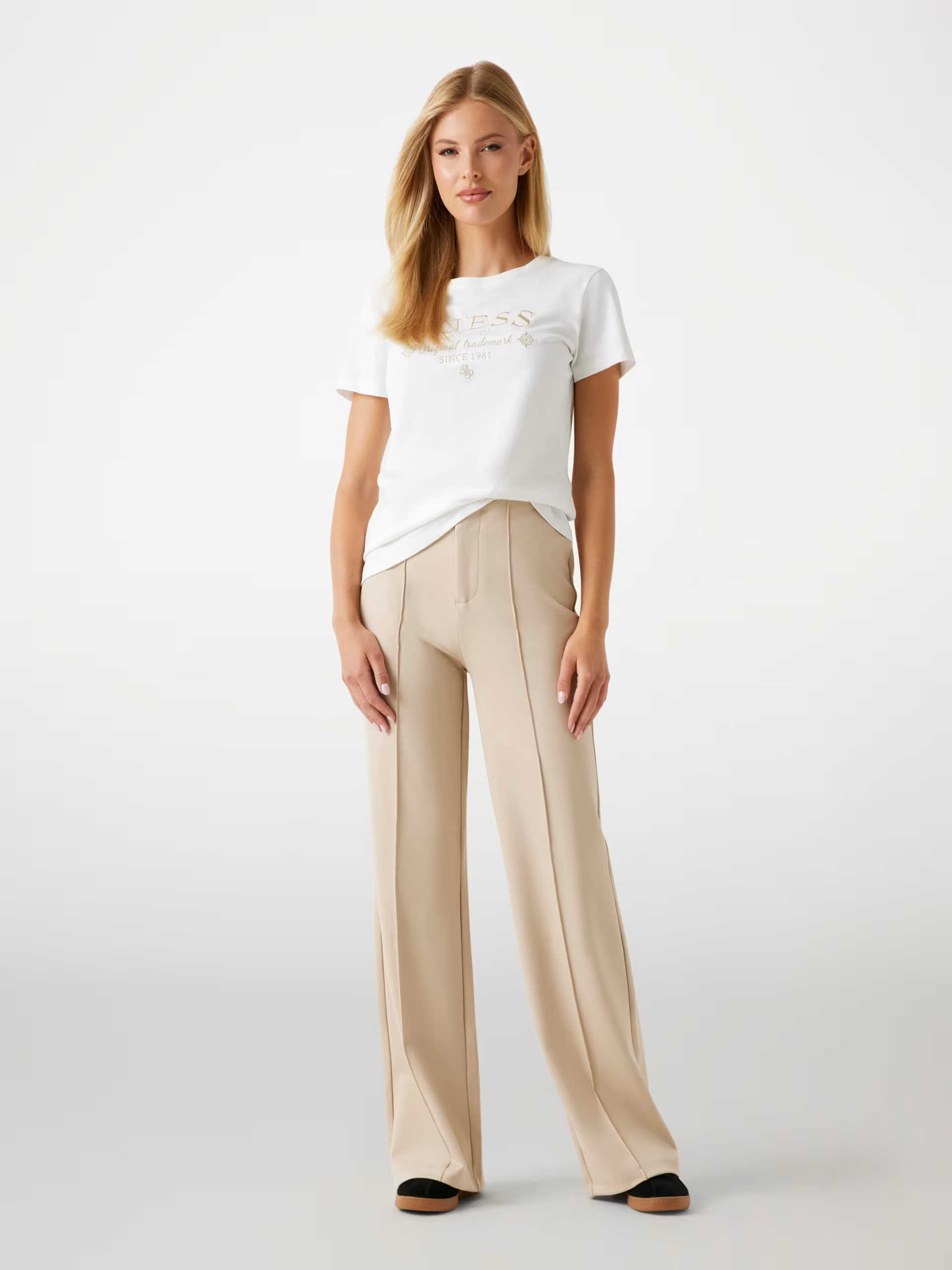 Τ-shirt από καθαρό βαμβακερό ζέρσεϊ ύφασμα.Κλασική στρογγυλή λαιμόκοψη.Κοντά μανίκια.Άνετη, κανονική εφαρμογή.Κεντημένο λογότυπο μπροστά με γυαλιστερό μεταλλικό νήμα.