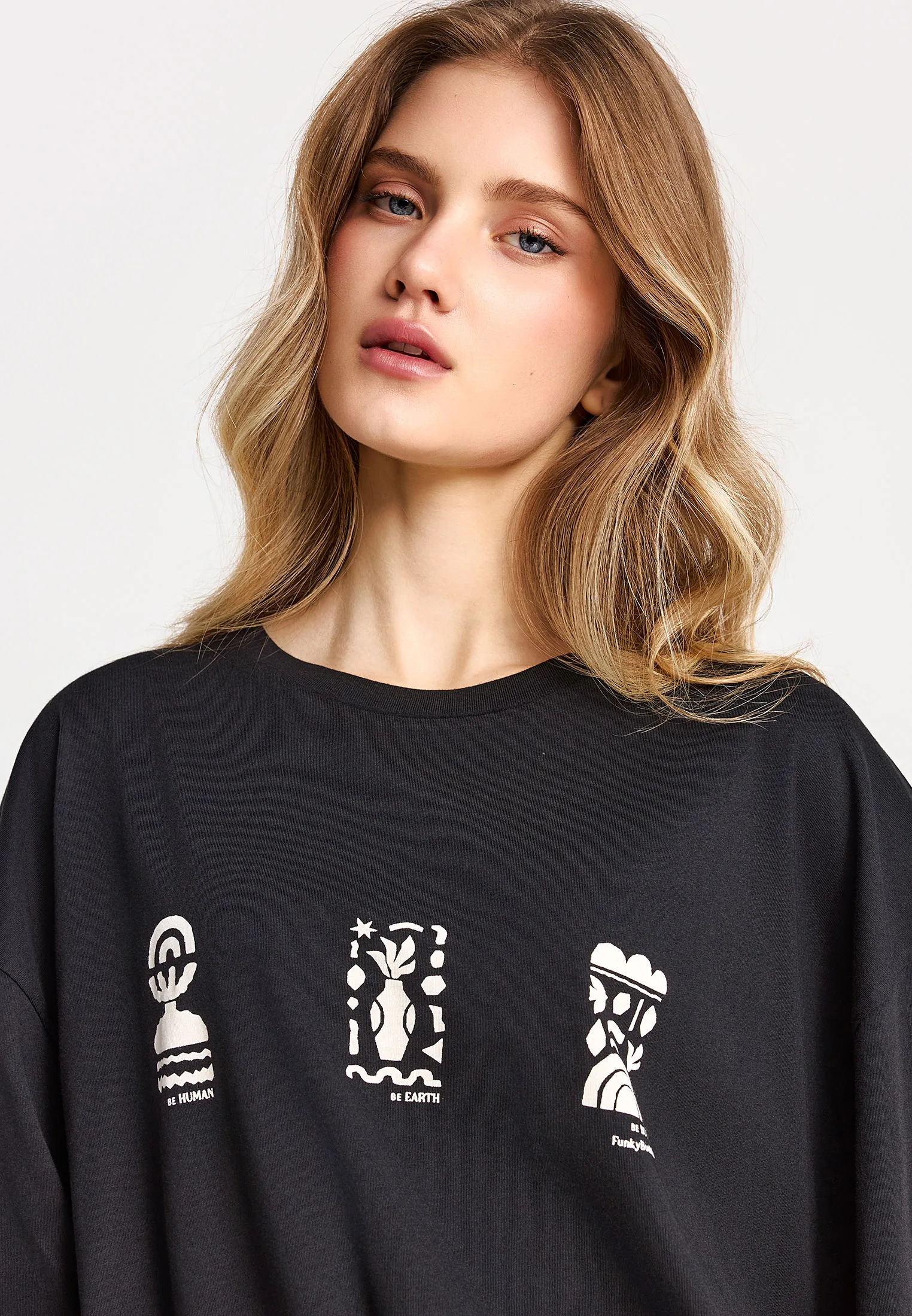 Γυναικείο relaxed t-shirt με τύπωμα στην πλάτη, σχεδιασμένο για να προσφέρει άνεση και στυλ σε κάθε σου εμφάνιση. Από 100% οργανικό βαμβάκι, αυτό το μπλουζάκι είναι απαλό στο δέρμα και ιδανικό για καθημερινή χρήση, ενώ το τύπωμα στην πλάτη αποτελεί χαρακτηριστικό της Funky Buddha. Συνδύασέ το με τζιν και sneakers για ένα cool και άνετο look.