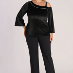Βελουτέ μπλούζα με έναν ώμο έξω Plus size
