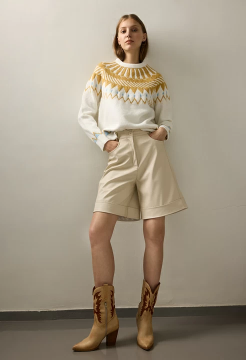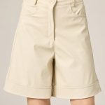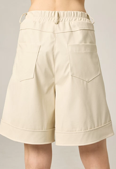 Βερμούδα με δερμάτινο εφέ, τσέπες στο πλάι και πίσω, κλείσιμο με κουμπί και φερμουάρ μπροστά, ελαστική μέση, κανονική εφαρμογή.